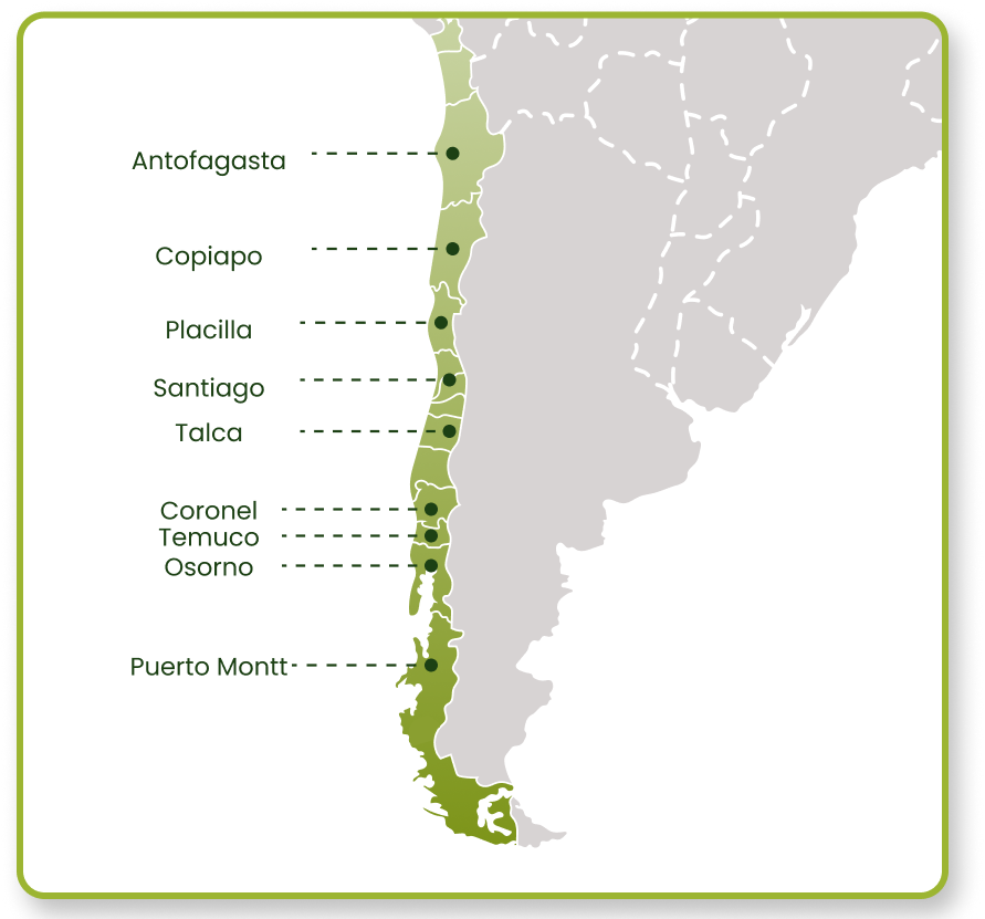 En el año 2021, se abrieron sucursales en Santiago, Puerto Montt, Temuco y Talca , al mismo tiempo que se comenzaron a construir las sucursales propias. En 2022, se expandieron al norte del país con sucursales en Copiapó y Antofagasta.